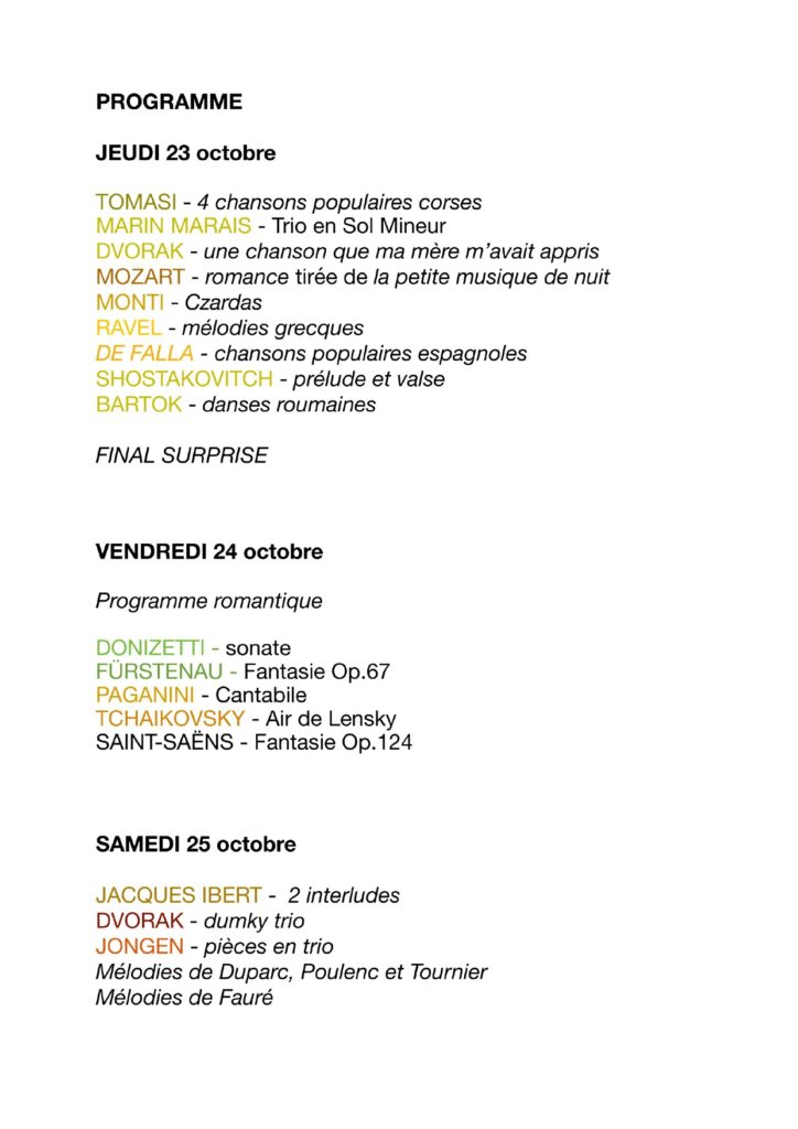 Programme Concerts octobre